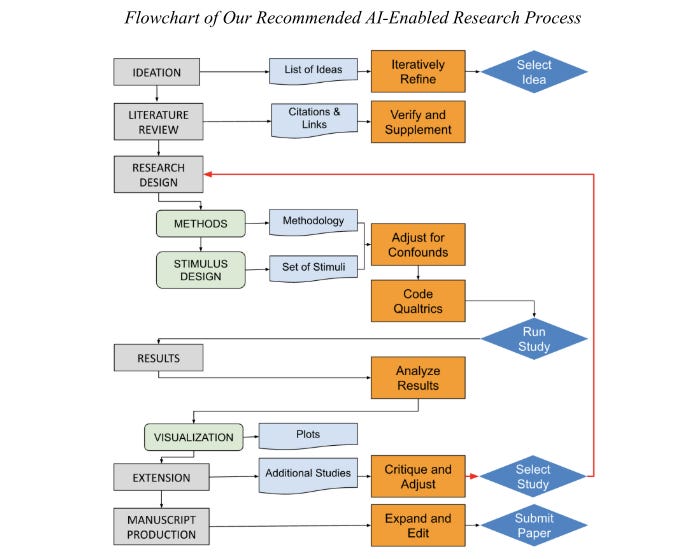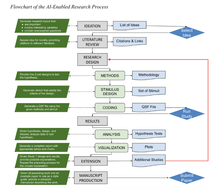 The paper sets out to examine whether Large Language Models (LLMs) can meaningfully perform the tasks involved in behavioural science research. Rather than speculate, the authors designed a practical test: conduct an entire behavioural research project using AI tools (ChatGPT-4, Bing Copilot, and Google Gemini) at every stage where possible. Their goal was to document what these systems can do, where they fall short, and what that tells us about the evolving relationship between AI and human thought in knowledge production. They call this process the “cyborg behavioural scientist” model where AI and human roles are blended, but with minimal human intervention wherever feasible.